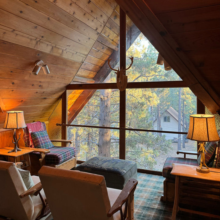 This glowing mountain cabin was built in the 1960’s in Big Bear, California by my father and uncle (Wilkie and Bob). As kids, we'd roost up in the A-frame loft watching the night sky through the big pyramid-shaped window that points straight to the stars. The cabin was built with a lot of love amidst the wonders of the National Forest.